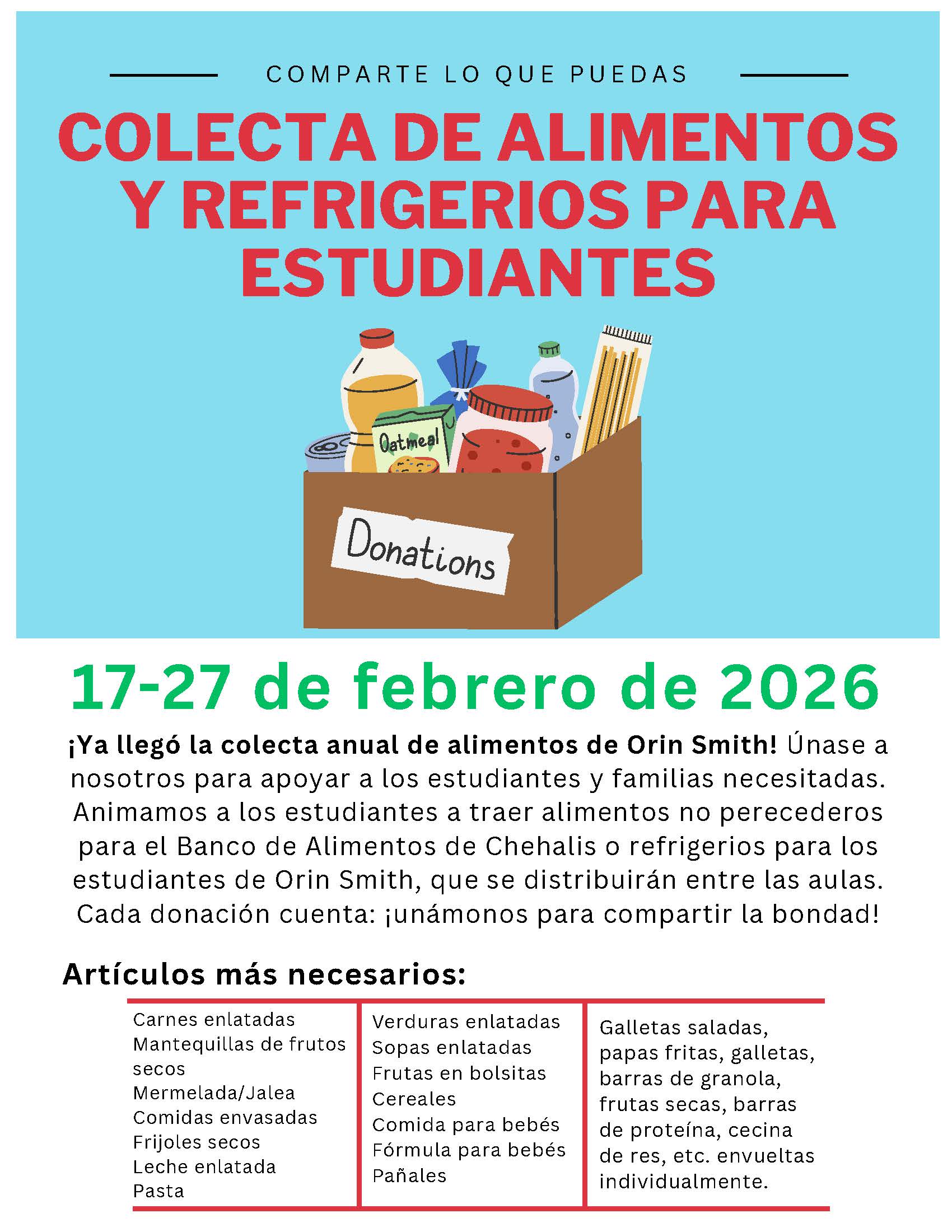 Food Drive begins on Tuesday, Feb 17th!